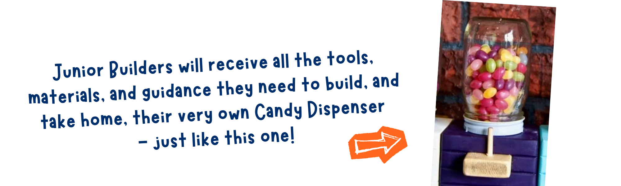 Join us for a hands-on Junior Builders Workshop where you and your little one will build your very own wooden candy dispense to take home! Perfect for curious minds and tiny hands ready to try out using real tools. This workshop is designed for kids to explore, create, and learn alongside a grown-up.