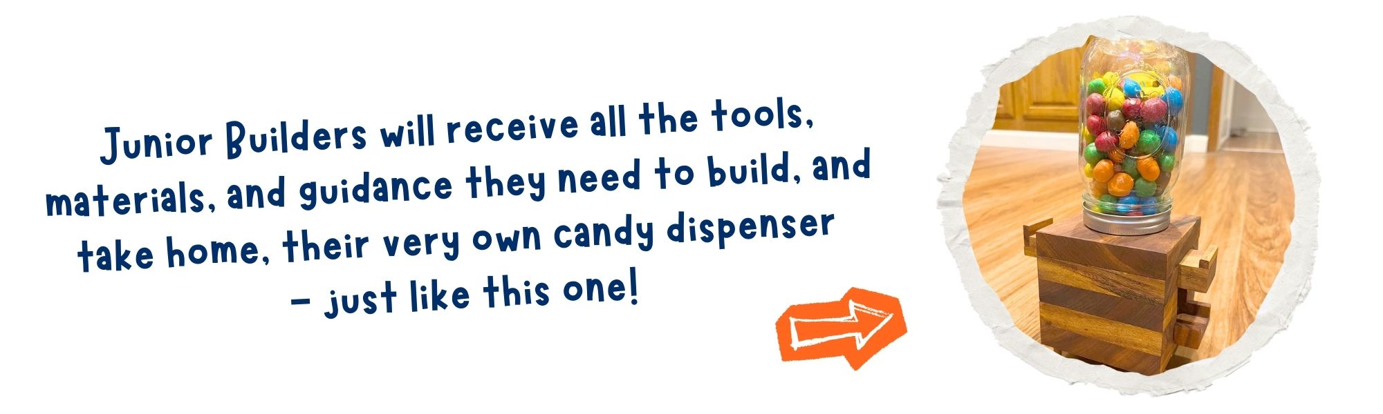 Join us for a hands-on Junior Builders Workshop where you and your little one will work together to build something fun! In this session, builders will create their very own wooden candy dispenserβa super sweet project thatβs as fun to make as it is to use.