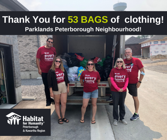 Wow! Our communities are incredible. Recently two local communities in the Peterborough and Kawartha Region held ‘Clothes for Homes’ drives to help build much-needed affordable homes.